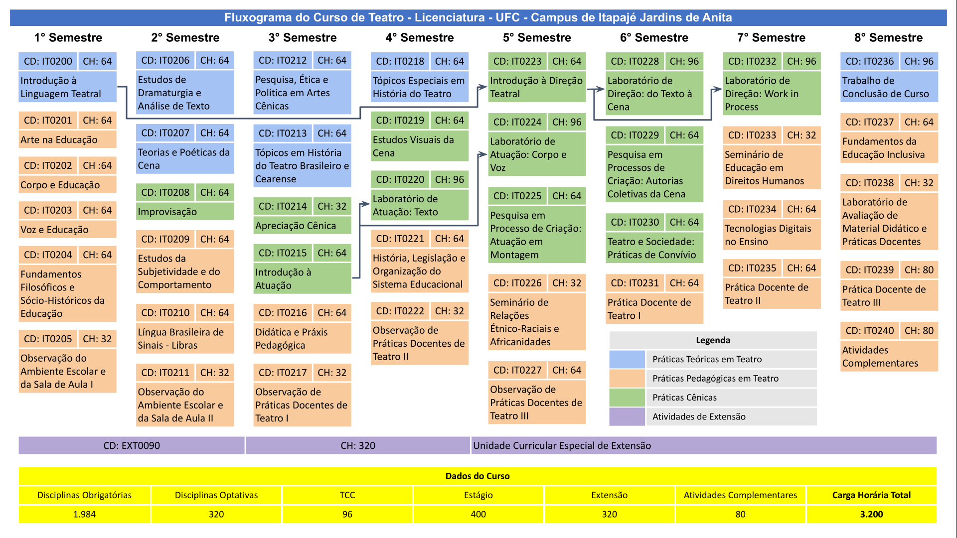 Você está em: Início › Teatro – Fluxo de DisciplinasTeatro – Fluxo de Disciplinas Licenciatura em Teatro Fluxograma do curso Compartilhe:TwitterFacebookLinkedinWhatsApp